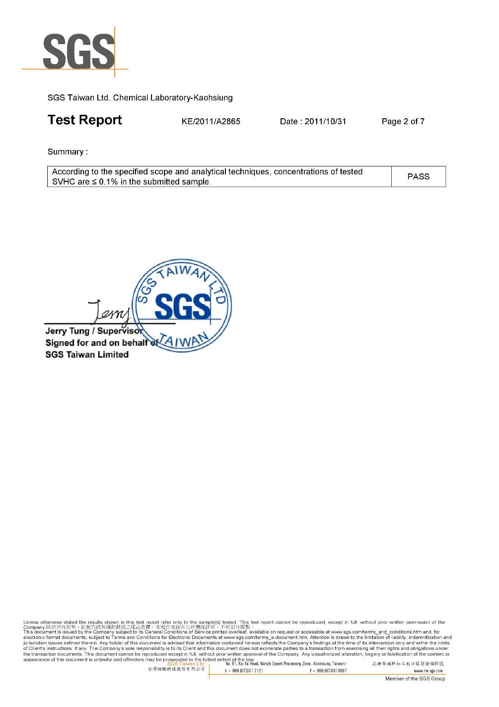 2009 successful development of PES yarn which is compliant with EU RoHS (Restriction of Hazardous Substances Directive) and REACH (Registration, Evaluation, Authorization and Restriction of Chemicals) standards.